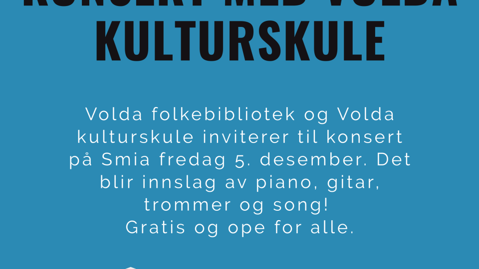 Konsert med Volda kulturskule på Smia Volda folkebibliotek og Volda kulturskule inviterer til konsert på Smia fredag 5. desember klokka 17.00.