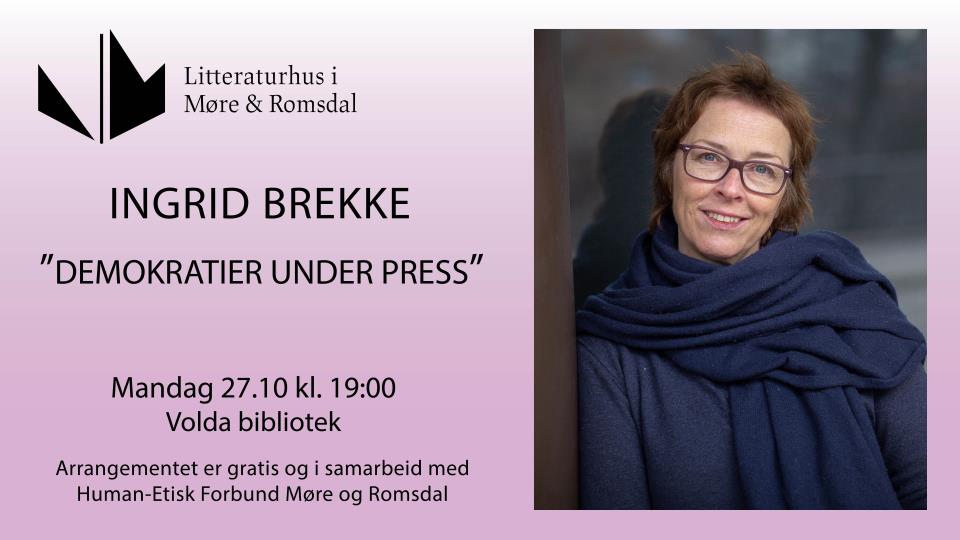 Demokratier under press Volda folkebibliotek ynskjer velkomne til foredrag med Ingrid Brekke måndag 27. oktober klokka 19.00.