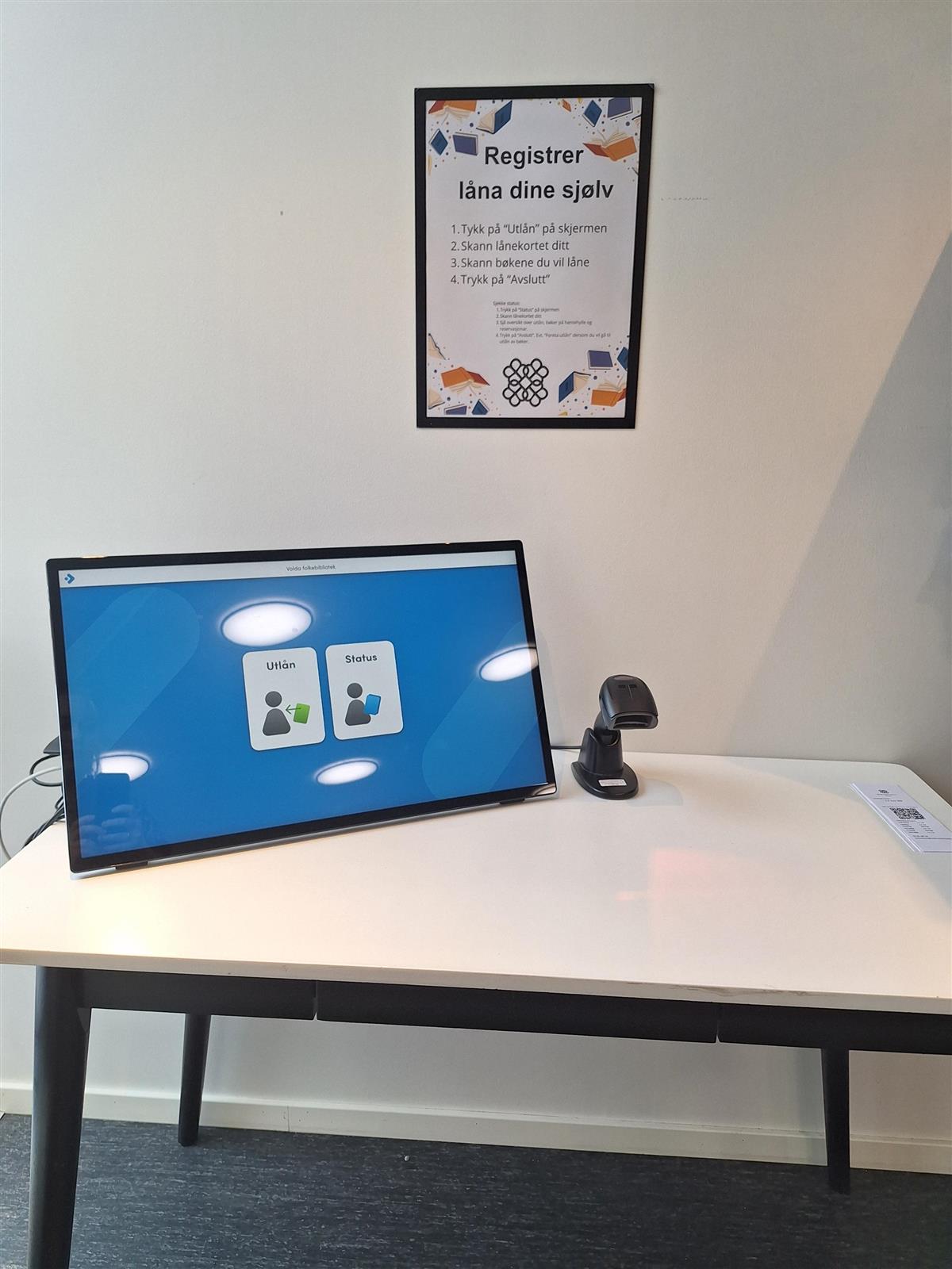Vi har fått på plass ny sjølvbetjent løysing på Volda folkebibliotek. På denne kiosk-PC-en kan du bruke lånekortet ditt for å registrere låna dine sjølv.
