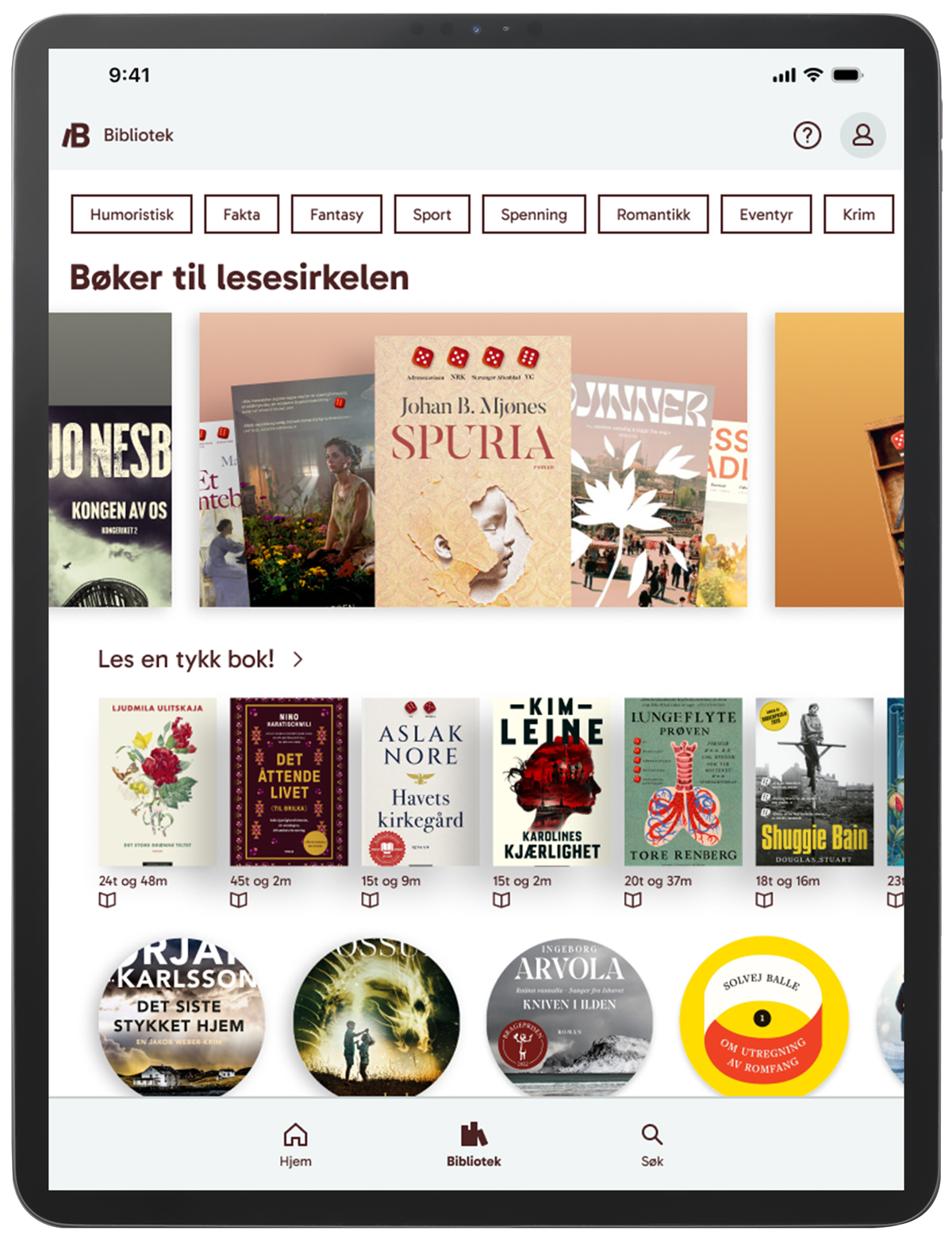 Du kan låne, reservere og ønskje titlar i appen, så får du varsel på e-post når boka er klar for deg.