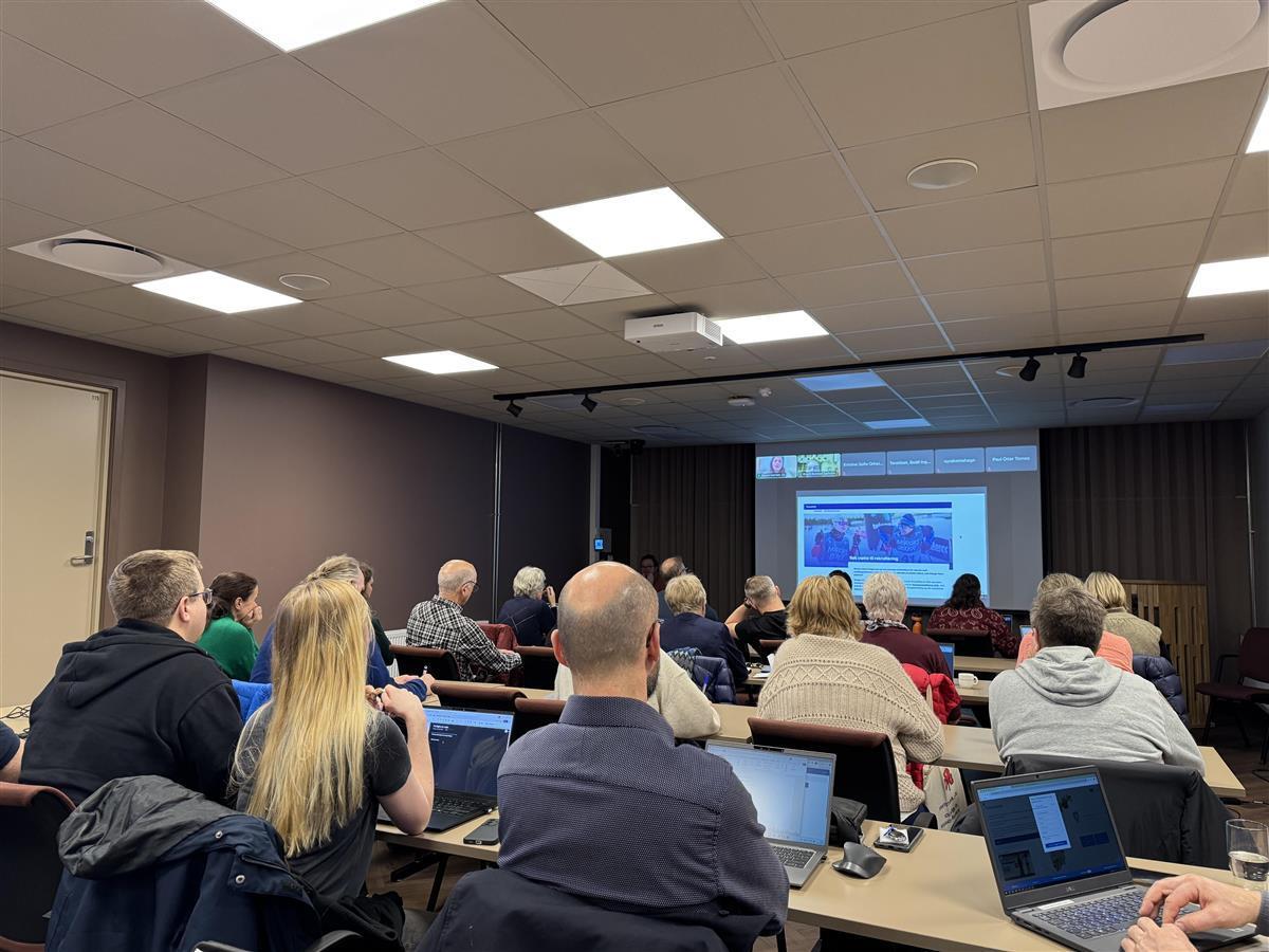 Paul Ottar Tornes leia oss gjennom kvelden og viste korleis kunstig intelligens (KI) kan brukast i søknadsarbeid – eit tema som engasjerte mange.